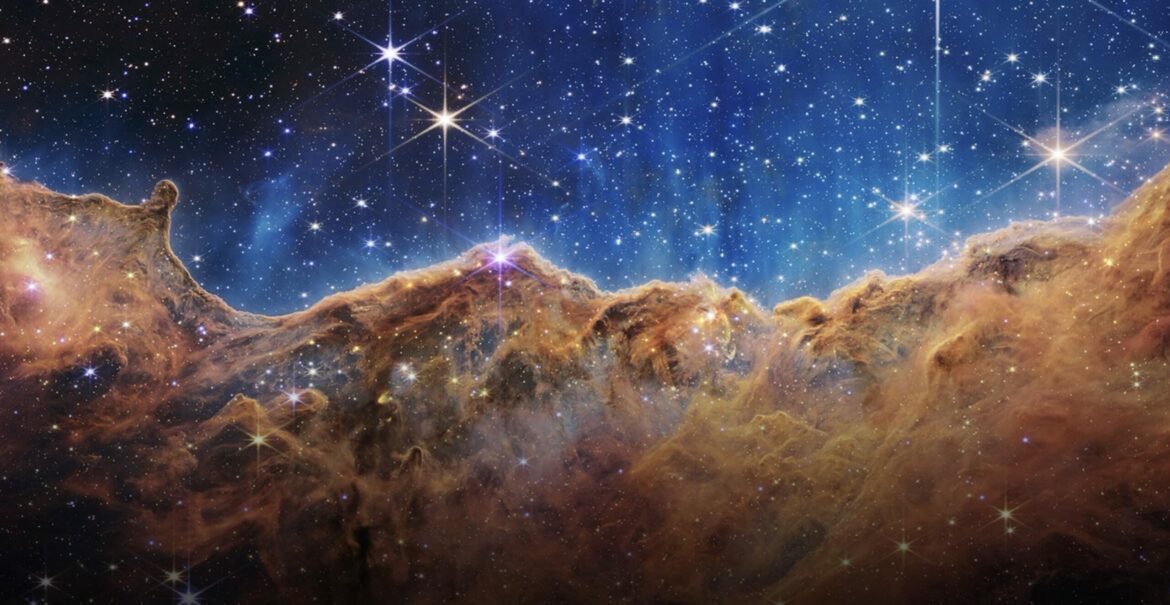 Image of the “cosmic cliffs” is the edge of a nearby star-forming area called NGC 3324 in the Carina Nebula. The telescope infrared pictures reveals previously unseen regions and processes of star birth and formation.